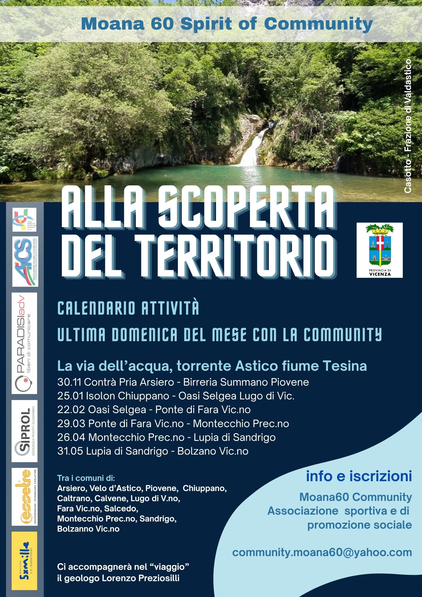 a partire da novembre 2025, ogni ultima domenica del mese vi invitiamo a partecipare alle Giornate alla scoperta del territorio lungo la Via dell’Acqua, un percorso che seguirà le sponde del Torrente Astico e del Fiume Tesina, da Contrà Pria (Arsiero) fino a Bolzano Vicentino.